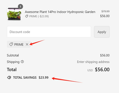 Promotion Details Use code Prime at checkout For Online Store 30% off on selected items include all hydroponic gardens and most replacements No minimum purchase requirement All customers Can’t combine with other discounts Active from Jul 17, 2024 until midnight Jul 20, 2024 Shop with code
